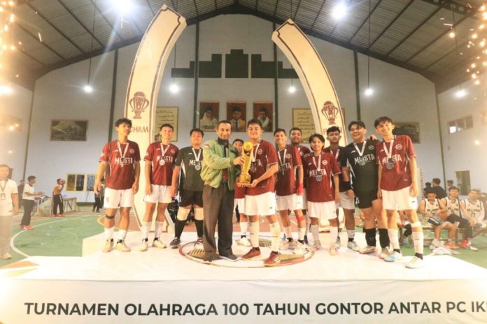GONTOR — Tim futsal IKPM Riau tampil sebagai juara cabang olahraga futsal Turnamen Olahraga Antar PC IKPM se-Dunia setelah menaklukkan IKPM Solo Raya lewat drama adu penalti dengan skor 2–0, usai bermain imbang 1–1 di waktu normal. Laga penuh tensi itu digelar di Gedung OlahragaPMDG, Ahad (26/10) malam.
