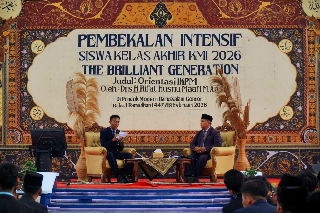 Rabu, 18 Februari 2026 – Pondok Modern Darussalam Gontor menyelenggarakan kegiatan Pembekalan Intensif Siswa Akhir KMI 2026 sebagai bagian dari proses akhir pembinaan sebelum para siswa memasuki fase pengabdian di tengah masyarakat. Kegiatan ini menjadi salah satu langkah strategis PP IKPM Gontor dalam mempersiapkan calon alumni agar mampu menjaga nilai, jiwa, serta falsafah kehidupan Gontor di berbagai lini kehidupan.