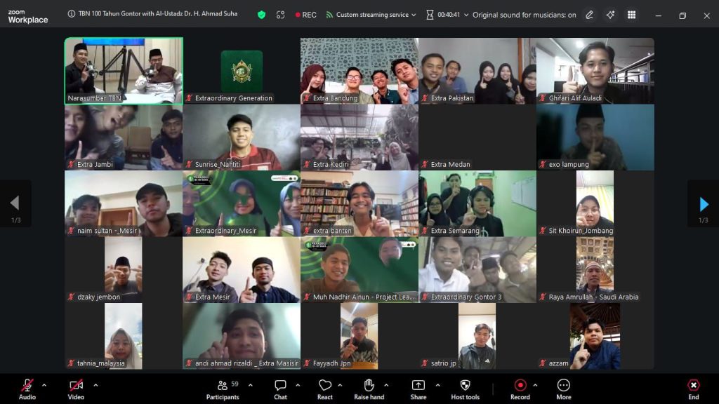 Gontor, 16 Maret 2026 — Alumni Gontor tahun 2022 menggelar reuni daring bertajuk High Level Tahaddus Bi-Ni’mah and Intima Virtual Extraordinary Sedunia. Acara ini merupakan acara penutup dari rentetan kegiatan Tahaddus Bi-Ni’mah Extraordinary Generation dalam rangka peringatan 100 tahun Gontor yang diselenggarakan selama bulan suci Ramadhan 1447 H.