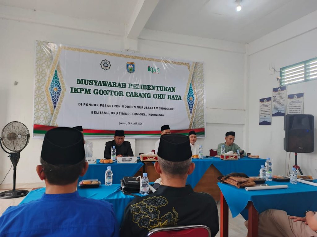 Ogan Komering Ulu Timur (OKU), 24 April 2026 – Seluruh alumni Pondok Modern Darussalam Gontor yang berdomisili di wilayah OKU Timur, OKU Selatan, dan OKU Induk berkumpul dalam agenda bersejarah: Musyawarah Cabang (Muscab) pembentukan PC IKPM Gontor OKU Raya di Gedung Pusaka Lantai 2, Kampus Pondok Pesantren Modern Nurussalam Sidogede, Belitang, OKU Timur pada Jumat (24/4).